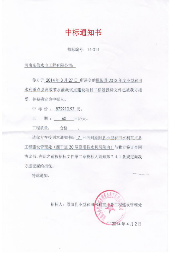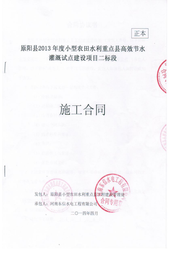 原陽縣2013年度小型農(nóng)田水利重點縣高效節(jié)水灌溉試點建設(shè)項目第二標(biāo)段